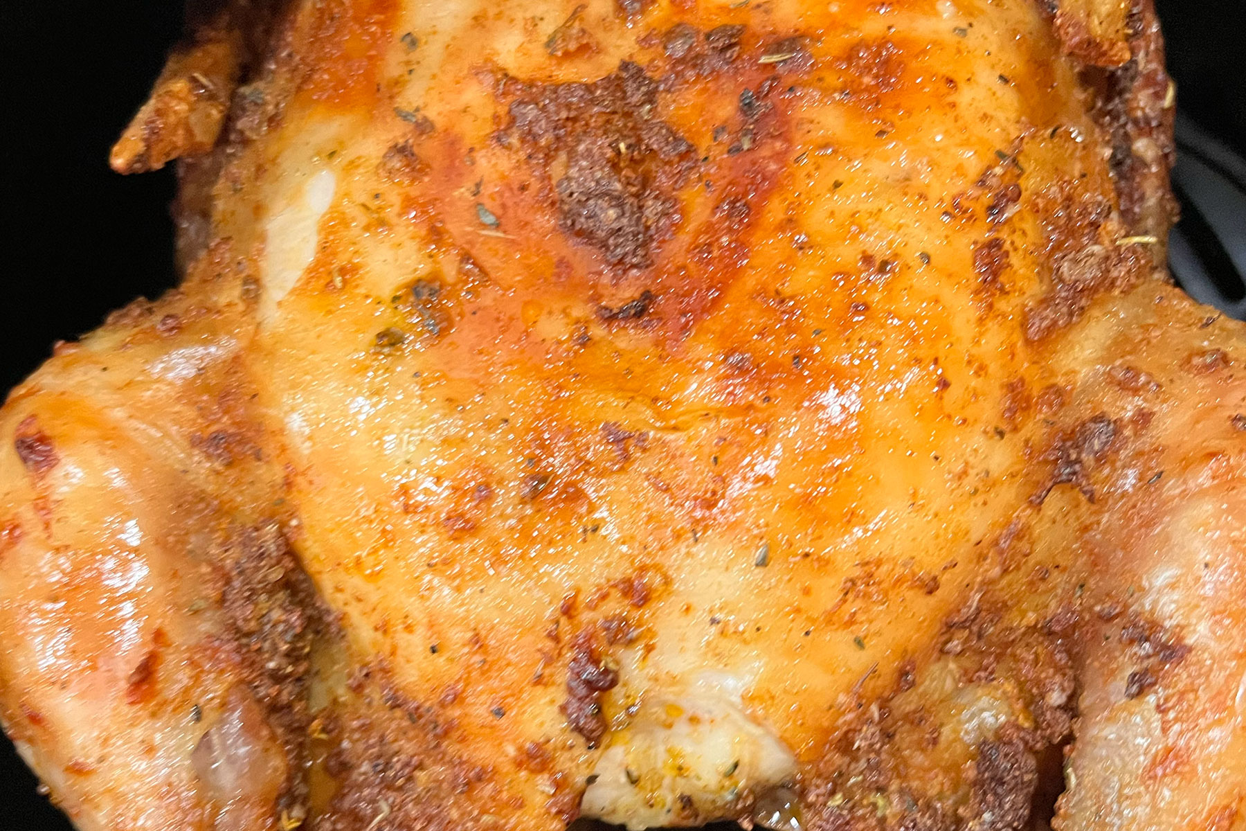 If you have ever bought a rotisserie chicken at the store, and you have a larger air fryer, this is for you. You can make a whole rotisserie-style chicken in the air fryer in about an hour. Once you try this, I can almost promise you won’t buy another store-bought chicken again.